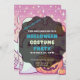 Set the tone for a spooktacular night with this modern and playful Halloween costume party invitation. The front design features a captivating pinkish-purple background that instantly draws the eye, setting a fun and enchanting atmosphere. At the heart of the design is a super cute ghost, who adds a touch of charm while keeping the Halloween spirit alive. Alongside the ghost, a creepy jack-o' lantern wearing a witch's hat adds a touch of classic Halloween eeriness, perfectly complemented by scattered pumpkins, a crescent moon, and twinkling stars for a magical touch.