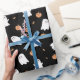 Cute Ghost & Pumpkin Black Halloween Pattern Wrapping Paper