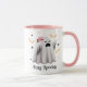 This halloween mug features a cute ghost surrounded by bats and stars in a colour palette of pastel pink and orange. The text reads 'stay spooky' but you can edit it if you prefer. See the whole matching collection.