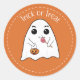 Cute ghost Trick or Treat Halloween classic round label sticker.