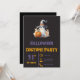At the top of the invitation, a captivating and charming graphic takes centre stage. A cute ghost, donning a grey witches hat and sitting behind a jack-o'-lantern, adds an element of playfulness and whimsy to the design, infusing your Halloween event with a touch of adorable spookiness.