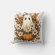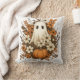 Cute Ghost With Pumpkin & Fall Flowers – Halloween Throw Pillow