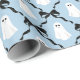 Cute Ghosts and Black Bows on Blue Halloween Wrapping Paper