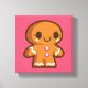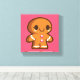 A cute illustration of a brown gingerbread man cookie. Soft pink buttons and squiggly frosting accents on his arms and legs. A festive and fun theme for the christmas holidays.