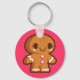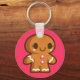 A cute illustration of a brown gingerbread man cookie. Soft pink buttons and squiggly frosting accents on his arms and legs. A festive and fun theme for the christmas holiday season.