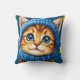 Adorable ginger cat face printed on a soft decorative pillow wearing a blue knit hood. Charming, whimsical home decor perfect for nurseries, kids' rooms, cozy living spaces, gifts, and pet lovers.