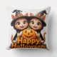 Cute Ginger Cats in Witch Hats Halloween Pumpkins Throw Pillow