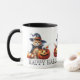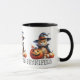 Salut ! Ajoutez le charme Whimsical à votre table de Fêtes avec cette mignonne chatte Halloween Mug! L'oeuvre présente un chat Tabby mignon portant un costume de sorcière. Son Jack-o-lanterne a un mignon petit chaton qui regarde du haut du Citrouille. Le verset dit : "Joyeux Jennifer d'Halloween !" Personnalisez cette Mug de chats en ajoutant votre nom de Chat, ou votre propre phrase !