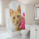A curious red tabby kitten is watching you, peering from behind a flowering bougainvilla with prying eyes, portrait. This shower curtain is a gift idea for cat lovers. A cute ginger kitty photographed by Katho Menden. http://www.zazzle.com/kathom_photo