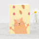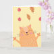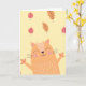 Cute Ginger Orange Cat Playing in Autumn Leaves Card