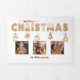 Cute, fun and unique festive holiday design featuring custom Merry Christmas calligraphy and gingerbread style fonts, hanging gingerbread cookie ornaments, photo templates and editable text.