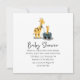 This cute baby shower invitation features a sweet parent and child giraffe illustration with modern hand lettered script typography, and a vibrant yellow back of the card. Perfectly suited for a jungle or safari themed shower. Adorable for a baby girl or boy!