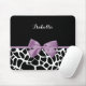A cute black and white giraffe print mousepad with a girly lavender purple ribbon tied into a feminine bow. Personalize this pretty animal print design by adding your name. Flat printed image, not actual bow.