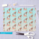 Tissue paper with a cute drawing in watercolors of a mom and baby giraffe. The mother giraffe is resting her head on top of the baby giraffe, loving and adorable. Pretty pink, yellow, green watercolor flower bouquet placed underneath this darling pair. A gradient background created with a delicate turquoise blue colour blending into a sandy brown colour.