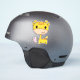 Cute cartoon baby giraffe with a yellow body with brown spots and a tan nose. Two round black eyes and a happy smile. To the side of the giraffe is a little pink love heart