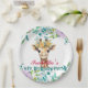 cute Giraffe zoo animals jungle Floral Birthday Paper Plate