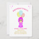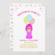 Cute girl 3rd birthday Invitation with a lovely girl dressed on pink and three multicolored balloons. And multicolored confetti on the back side. All texts and numbers are ready to be personalized.