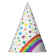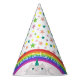 Cute, personalized girl Birthday party hat with rainbow colourful stars and kawaii cat unicorn.