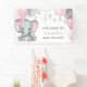 Let your guest know they've arrived with this adorable baby shower banner featuring pink and grey baby girl elephant with balloons and confetti. Easily customized for your event by clicking personalize.