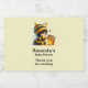 Baby Shower thank you bottle labels with a cute image. A girl in a crocheted bee costume with a bee by her side. Watching over a jar of honey.