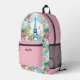 Cute Girls Pink Eiffel Tower Floral School Printed Backpack