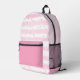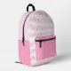 Cute, personalized backpack featuring watercolor pink and white stripes and dots. Add a monogram, name or other custom text wherever you like in EDIT. ASSISTANCE: For help with design modification or personalization, colour change, resizing, transferring the design to another product or if you would like coordinating items, contact the designer BEFORE ORDERING via the Zazzle Chat MESSAGE tab below or email makeitaboutyoustore@gmail.com.