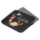 Laptop Sleeve featuring a black background with orange pink and green flowers and a custom first name monogram