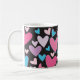 © Christina Katson- My original abstract vector art & design.This cute coffee mug has a bold colourful pattern with various shades of pink, purple, and turquoise blue hearts against a black background. This would make a great Valentine's Day gift for her; especially for girls and teens! A fun girly coffee mug that would brighten up any occasion.