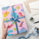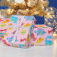 Cute Girly Colourful Pink Dinosaur Theme Birthday Wrapping Paper