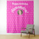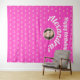 This cute girly tapestry features a vibrant hot pink background adorned with a playful, colourful bow pattern all over, creating a fun and festive atmosphere. In the centre, there's a customizable space where you can add the birthday girl's photo to make it extra special for the celebration. The design is complemented by modern, stylish white typography that says "Happy Birthday" followed by the birthday girl's name. Below the photo, the date is displayed in a simple, classic script, adding a personal touch. It’s the perfect decoration to welcome guests and set the tone for a stylish, memorable birthday party!