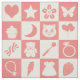 Cute Girly Modern Pink Chequered Icons Pattern Fun Fabric