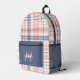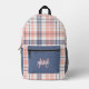 Cute Girly Pink and Blue Plaid Monogram Printed Backpack