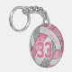 cute girly pink grey personalized volleyball keychain