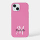 Cute Girly Pink Monogram Name + Initial iPhone 15 Case