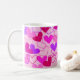 © Christina Katson- My original abstract art, vector art & design. This cute coffee mug has a colourful abstract falling hearts design with a bright decorative pattern of pink, fuchsia, red and purple hearts. This girly coffee mug would brighten up any coffee lover's day. It would be a great gift for Valentine's Day! Especially for girls and teens.