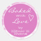 Cute Girly Pink Rose Orbs Frame Baked with Love Classic Round Sticker