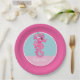 Cute Girly Pink Seahorse Kids Name Paper Plate