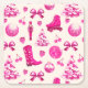 Cute Girly Preppy Pink Christmas Pattern Square Paper Coaster