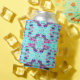 Cute Girly Purple Flower Pattern on Aqua Blue Can Cooler