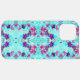 Cute Girly Purple Flower Pattern on Aqua Blue Case-Mate iPhone Case