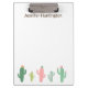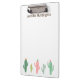 This design features cute watercolor succulent cactus shapes in pink, orange, red, and green. Personalize this clipboard with the name of your choice and customize the font and colour as you please. Other colours and designs are available. Please contact us and we'd be happy to assist you.