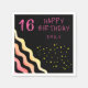 Cute Girly Wave Star Pattern Birthday Party Napkin - personalize the name, age number and wish Happy birthday. Napkins with colourful waves and yellow stars on black - great for a girl party.