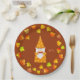 Cute Gnome and Holiday Fall Leaves on Terracotta Paper Plate