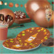 Cute gnome and holiday Fall leaves on terracotta background Thanksgiving Party Plate. Text can be personalized. Ideal for any event during Autumn season. Text can be replaced by monogram or your text.