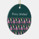 Cute Gnome And Reindeer With Pink Glove Ceramic Ornament