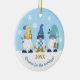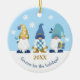 Cute Gnome for the Holidays Blue Gold Ceramic Ornament