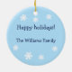 This adorable ornament has three cute gnomes and snowflakes in lovely blue, gold and white colours and a buffalo plaid design (gold colours are simulated and have no actual metallic gold). It says "Gnome for the holidays!" The item can be personalized with the year on the front, and a name or names on the back. The back says "Happy holidays! and has a blue background with white snowflakes.