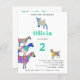 A collection of colourful, psychedelic goats in vibrant pink, purple, blue, orange, yellow and aqua with pigmy goat, baby goat and goats standing on goats. A cute multicolored 2nd birthday party invitation personalize to any age. This fun farm animal party invitation is easy to personalise to create a unique party invitation suitable for children and adult goat lovers. Original artwork by artist Catherine Sweetman