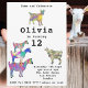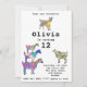 A collection of colourful, psychedelic goats in vibrant pink, purple, blue, orange, yellow and aqua with pigmy goat, baby goat and goats standing on goats. A cute multicolored farm animal birthday party invitation. This fun farm animal party invitation is easy to personalise to create a unique party invitation suitable for children and adult goat lovers. Original artwork by artist Catherine Sweetman
