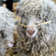 A photographic design of a very cute angora goat with a straw decoration.